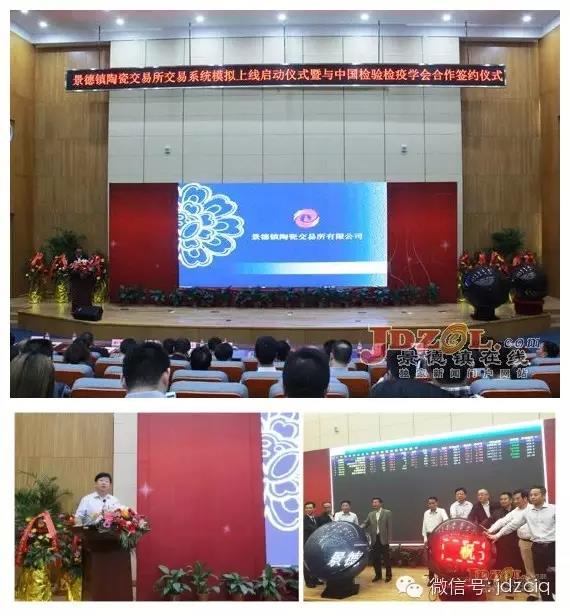 10月18日下午,景德鎮(zhèn)陶瓷交易所交易系統(tǒng)模擬上線啟動(dòng)儀式暨與中國(guó)檢驗(yàn)檢疫學(xué)會(huì)合作簽約儀式在景德鎮(zhèn)中國(guó)陶瓷博物館舉行。中國(guó)檢驗(yàn)檢疫學(xué)會(huì)會(huì)長(zhǎng)、質(zhì)檢總局原副局長(zhǎng)魏傳忠,江西檢驗(yàn)檢疫局副局長(zhǎng)劉海葆等領(lǐng)導(dǎo)出席了儀式。景德鎮(zhèn)檢驗(yàn)檢疫局副局長(zhǎng)張和貴代表景德鎮(zhèn)市檢科院與景德鎮(zhèn)陶瓷交易所簽署合作協(xié)議。