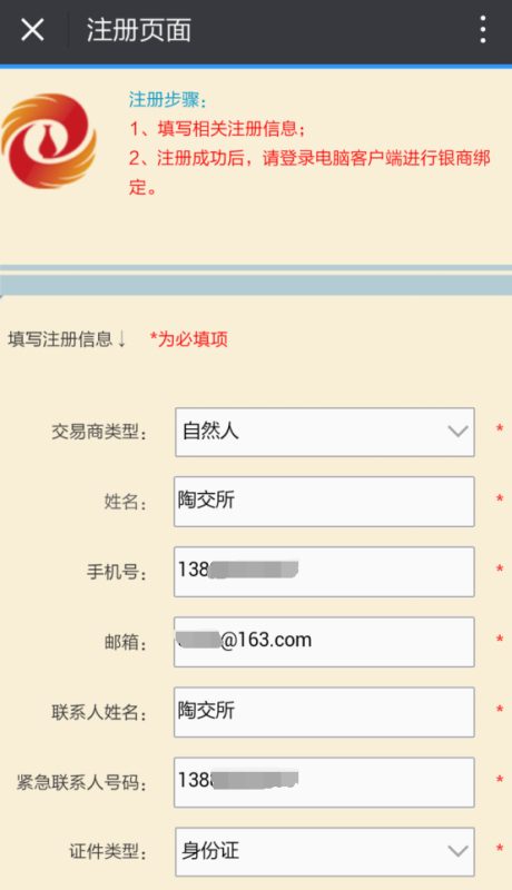 按要求填寫(xiě)相關(guān)信息,選擇會(huì)員類(lèi)別,個(gè)人客戶(hù)填寫(xiě)示范如下: