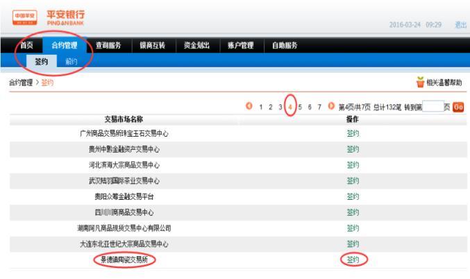 會員登錄系統(tǒng),進入合約管理—簽約功能,系統(tǒng)返回所有交易市場,選擇【景德鎮(zhèn)陶瓷交易所】,點擊簽約按鈕進行簽約操作。