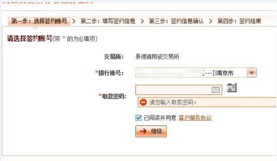 4、 選擇交易所名稱“景德鎮(zhèn)陶瓷交易所”,點擊“簽約”