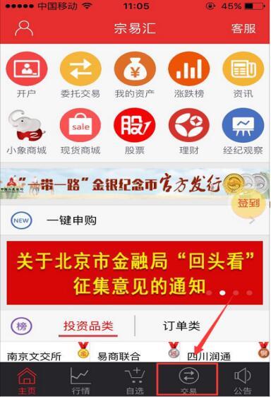 2)步驟二:進(jìn)入“宗易匯”界面后點(diǎn)擊“交易”