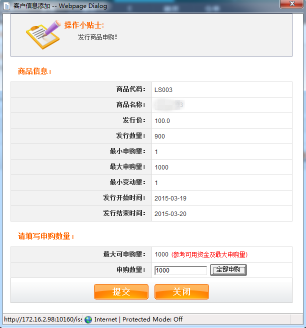 輸入申購數(shù)量,點擊提交。