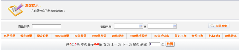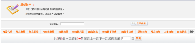 通過該頁面可以查詢到配售商品的情況。如圖2.2.2-1