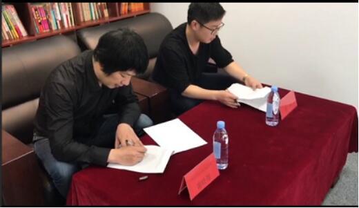 三睿堂謝嶺翔和鴻儒文化張濤進(jìn)行簽約