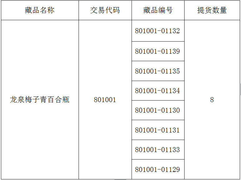 2018009關(guān)于交易藏品《龍泉梅子青百合瓶》提貨公告